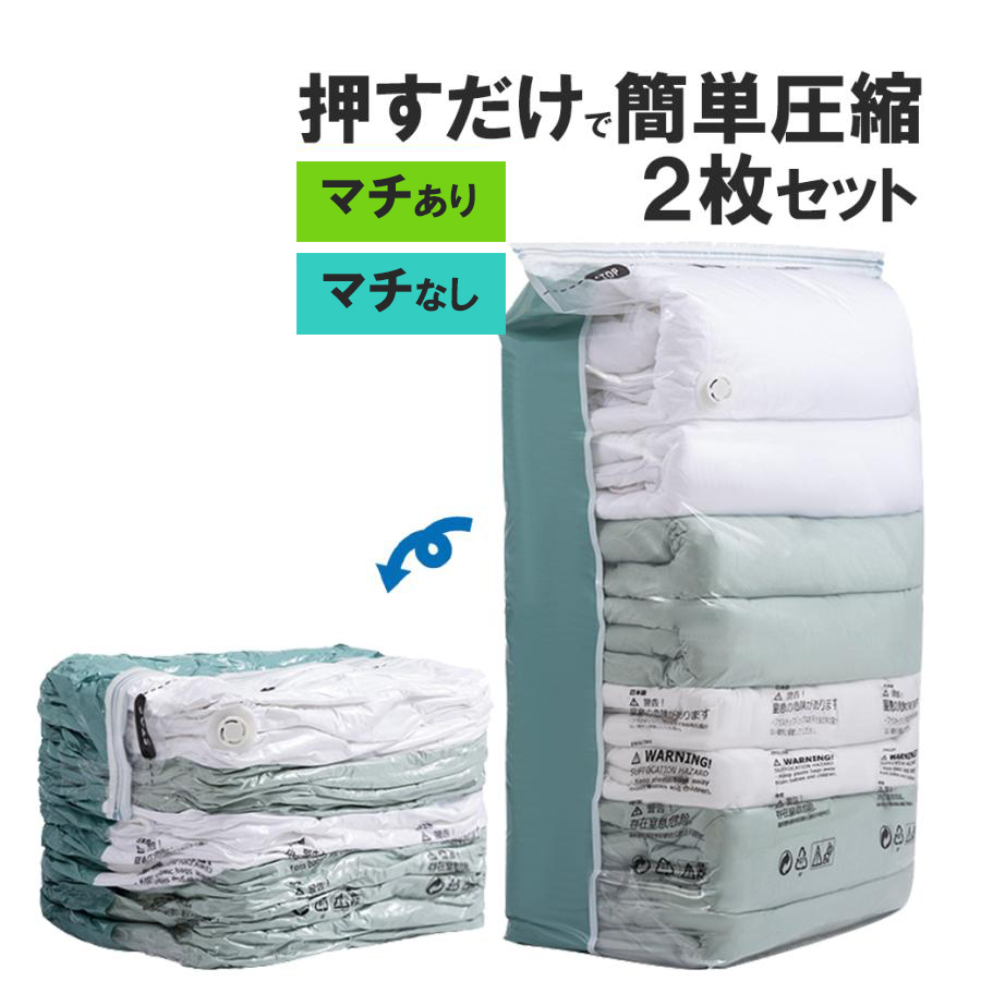 圧縮袋 衣類 布団圧縮袋 2枚セット 収納袋 掃除機不要 掃除機 ポンプ 不要 布団 ふとん 立体 マチ付き マチなし 大容量 特大 立体 新生活 ポイント利用 母の日