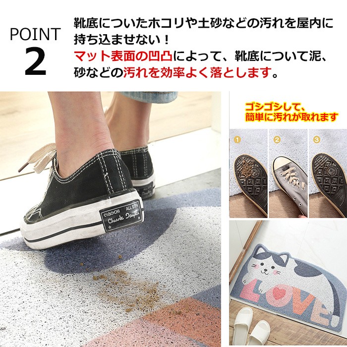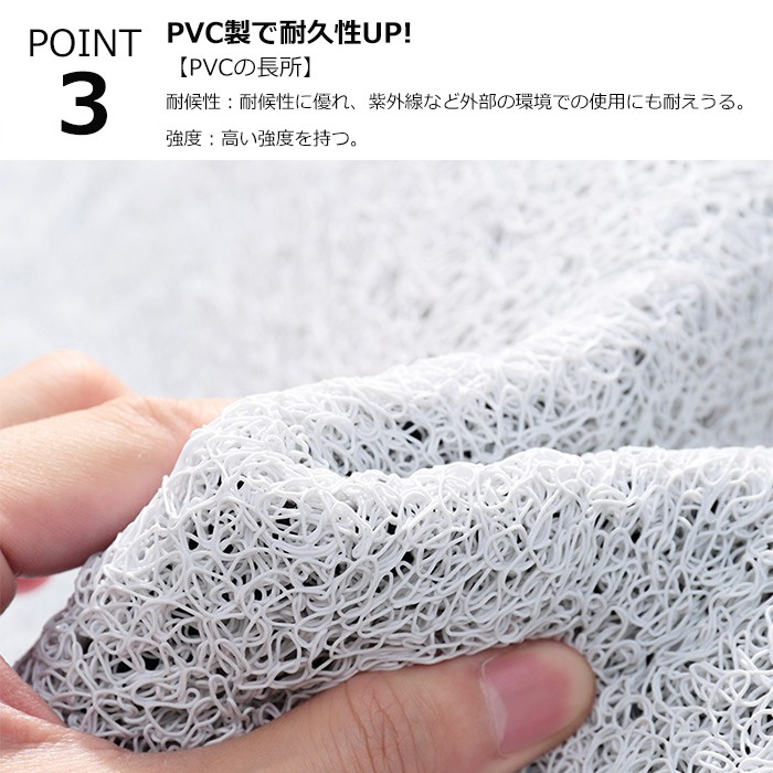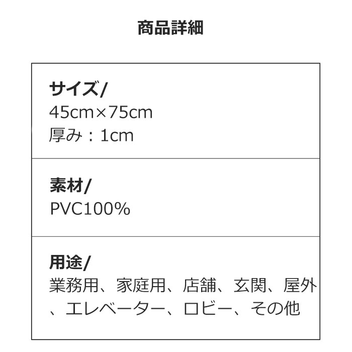 ・靴底についた、塵や土砂などの汚れを屋内に持ち込ませない! マット表面の凹凸によって、靴底についた泥、砂などの汚れを効率よく落とし、適度な弾力があります。