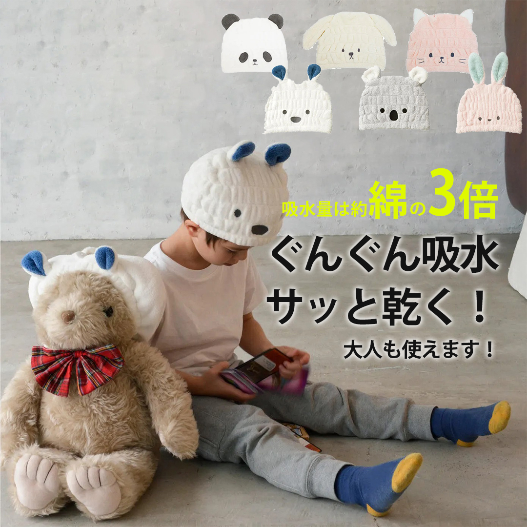・吸水力抜群のマイクロファイバータオルを使用した、見た目も可愛いアニマルキャップです。