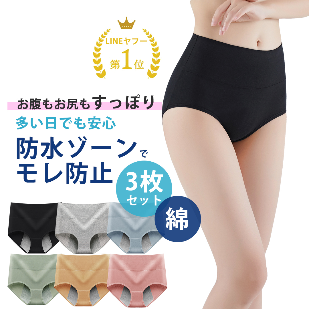サニタリーショーツ 3枚セット 防水布付きショーツ ハイウエスト 生理用ショーツ 生理用パンツ サニタリーパンツ 大きいサイズ ジュニア パンツ 夜用 防水パンツ
