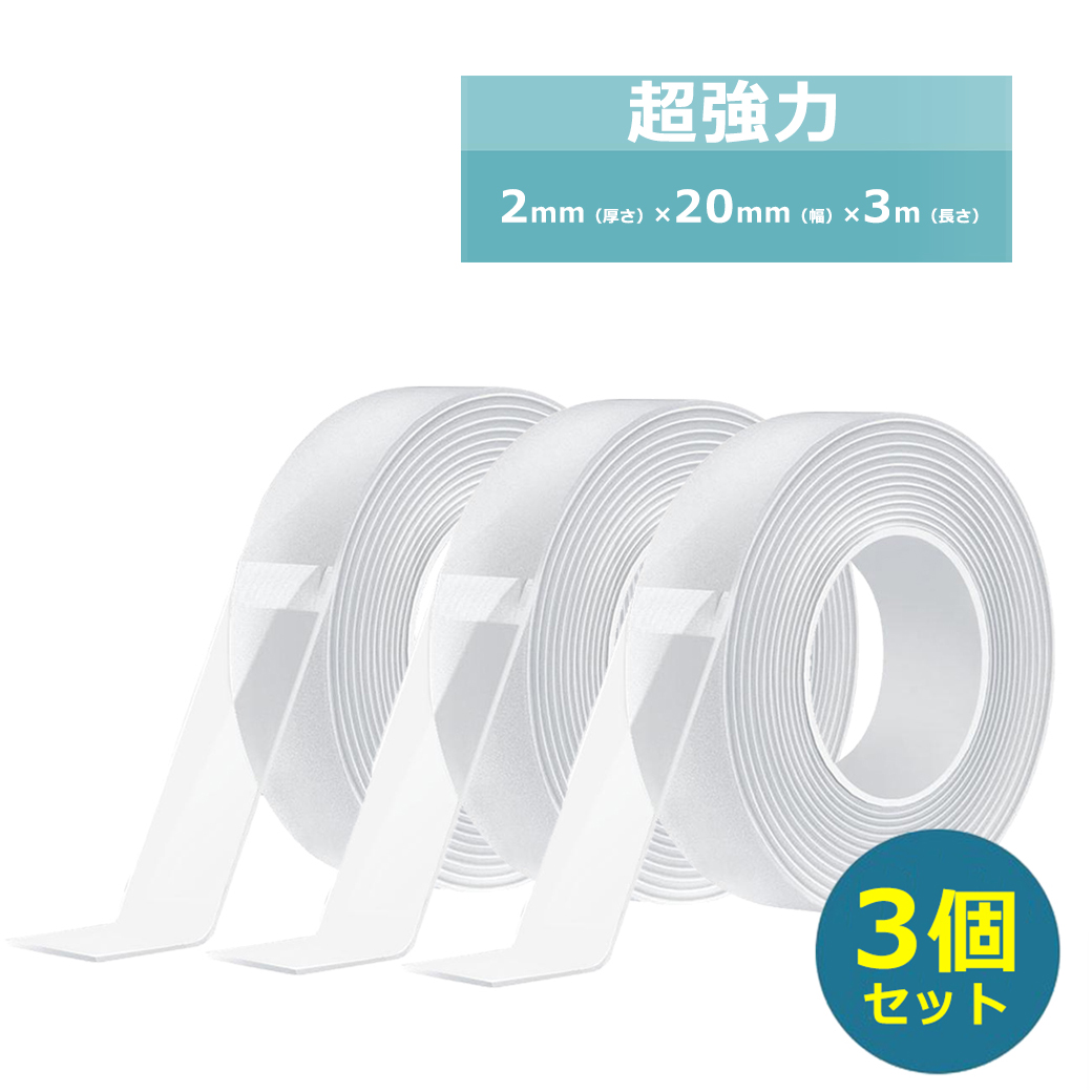 両面テープ 超強力 3m 3個セット 防災 透明 車 強力 透明 クリア DIY はがせる ドアバイザー 強力両面テープ 車用テープ 厚み2mm