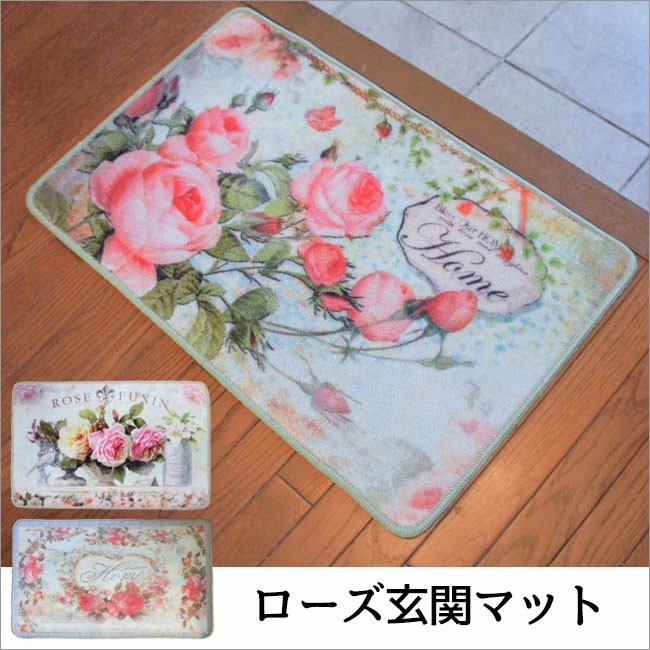 玄関が華やぐヴィクトリアンなローズ柄が素敵な玄関マットです。裏に滑り止め付きです。■サイズ:約46×71cm■素材:表 ナイロン100%裏 ナチュラルラテックス100%※使用上の御注意ご使用環境やご使用方法により塩化ビニル、フローリング等、床材の変色が起こることがあります。長時間敷いたままでのご使用は避け月に数回の陰干しをしてください。特に新築の床材、ワックス掛け後はご注意ください。フローリングなどの滑りやすい床の上ではフロアマット自体が滑り転倒する恐れがありますので滑り止めシートをご使用ください梱包の状態でしばらくは折りじわが発生しますが1日程度でなじみます。つまずき等の転倒にご注意ください商品の特性上、表生地が滑りやすくなっています。飛び乗ったり走ったりすると転倒する恐れがありますご注意くださいアイロンは使用しないでください。表面を強く擦ると色移りする場合があります。白い衣服などにはご注意ください。水で濡れると効果が薄れますので乾燥させてからご使用ください■お手いれ方法部分的な汚れはカーペットクリーナーや 薄く薄めた中性洗剤を布に付け、軽く擦ってください。洗濯時、色移りする場合があります。ご注意ください。