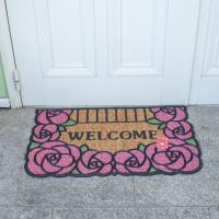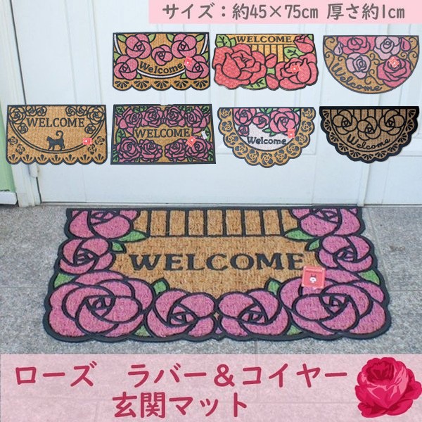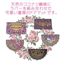 玄関マット ドアマット ラバーコイヤーマット 薔薇 ローズ ピンク WELCOME ウェルカム かわいい おしゃれ