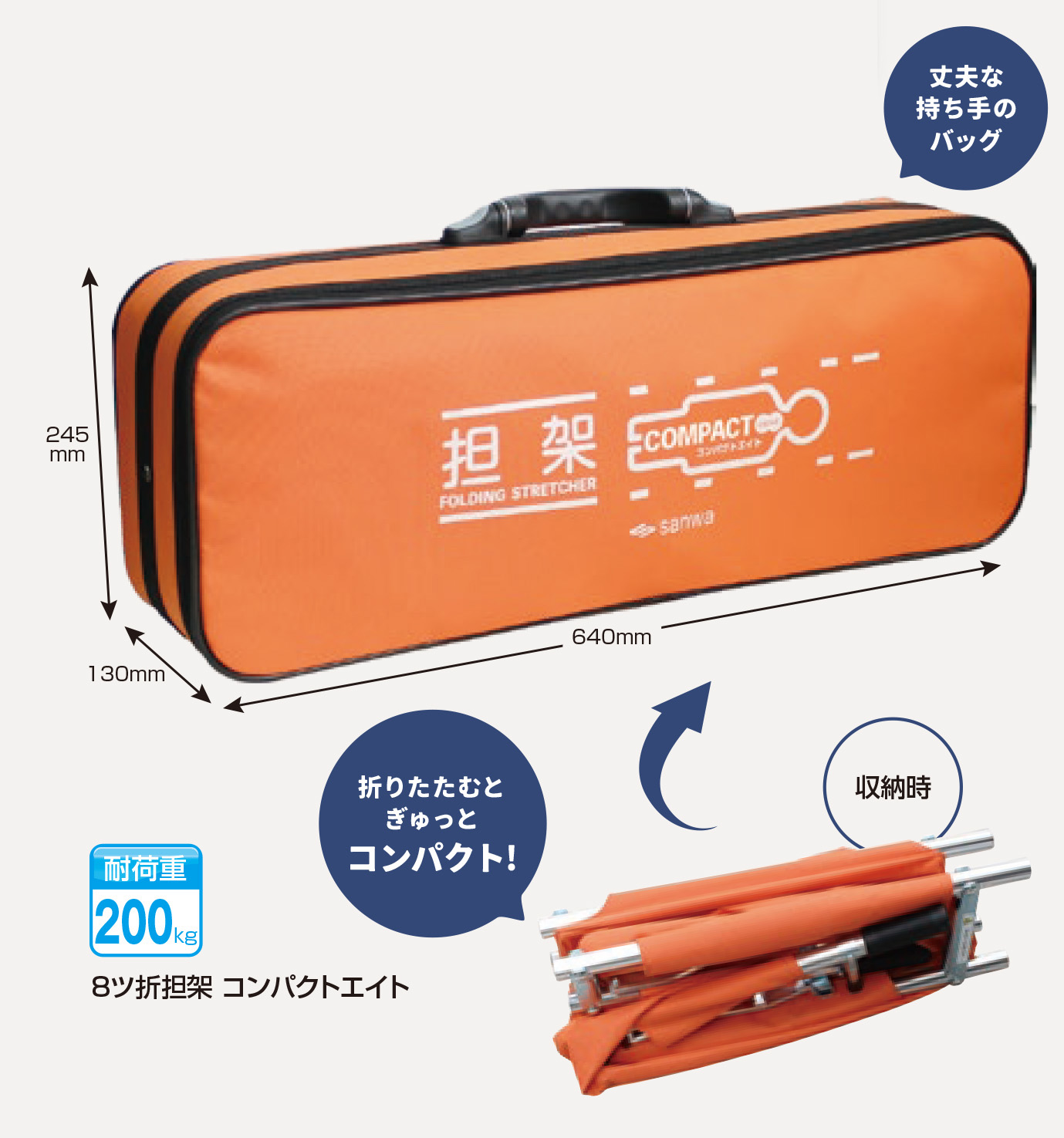 8ツ折 担架 コンパクトエイト 折りたたみ 軽量 アルミ製 安全ベルト付き 収納ケース付き 三和製作所 防災用担架 ストレッチャー 簡易ベッド【メーカー直送品】