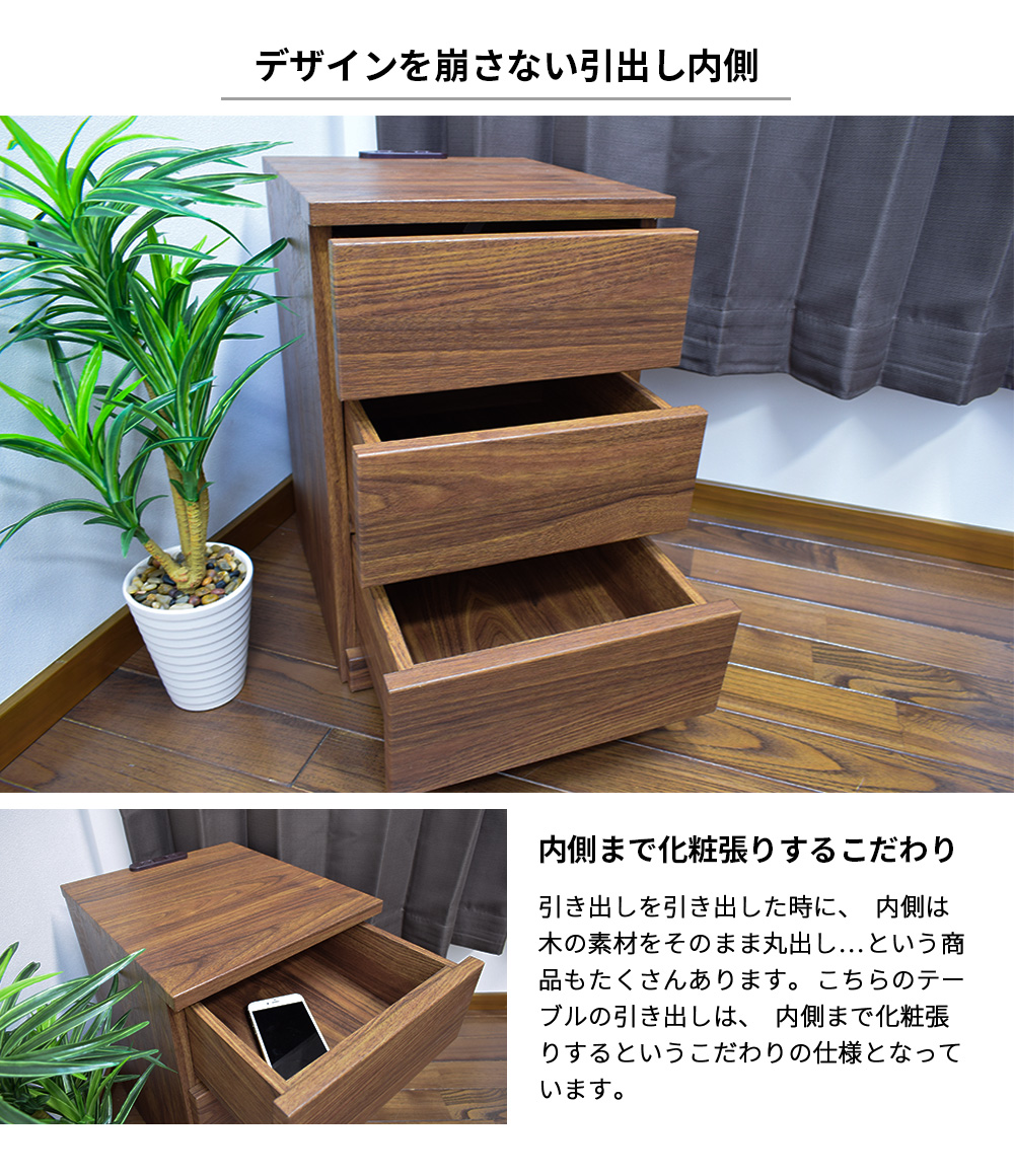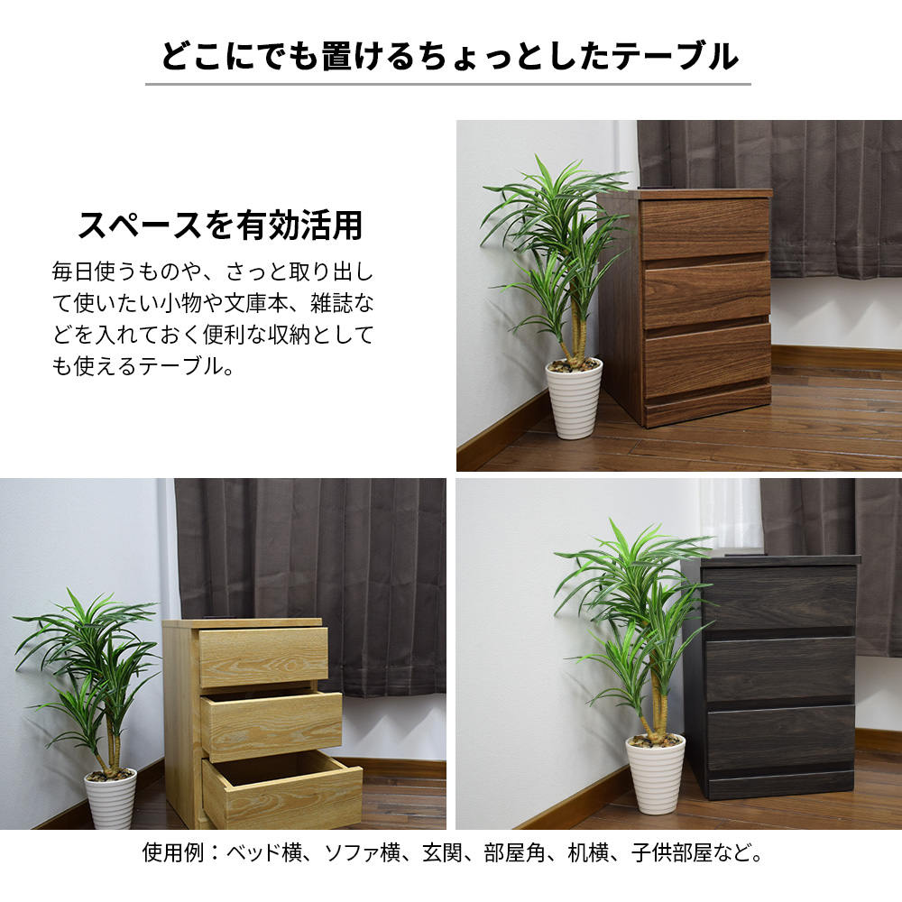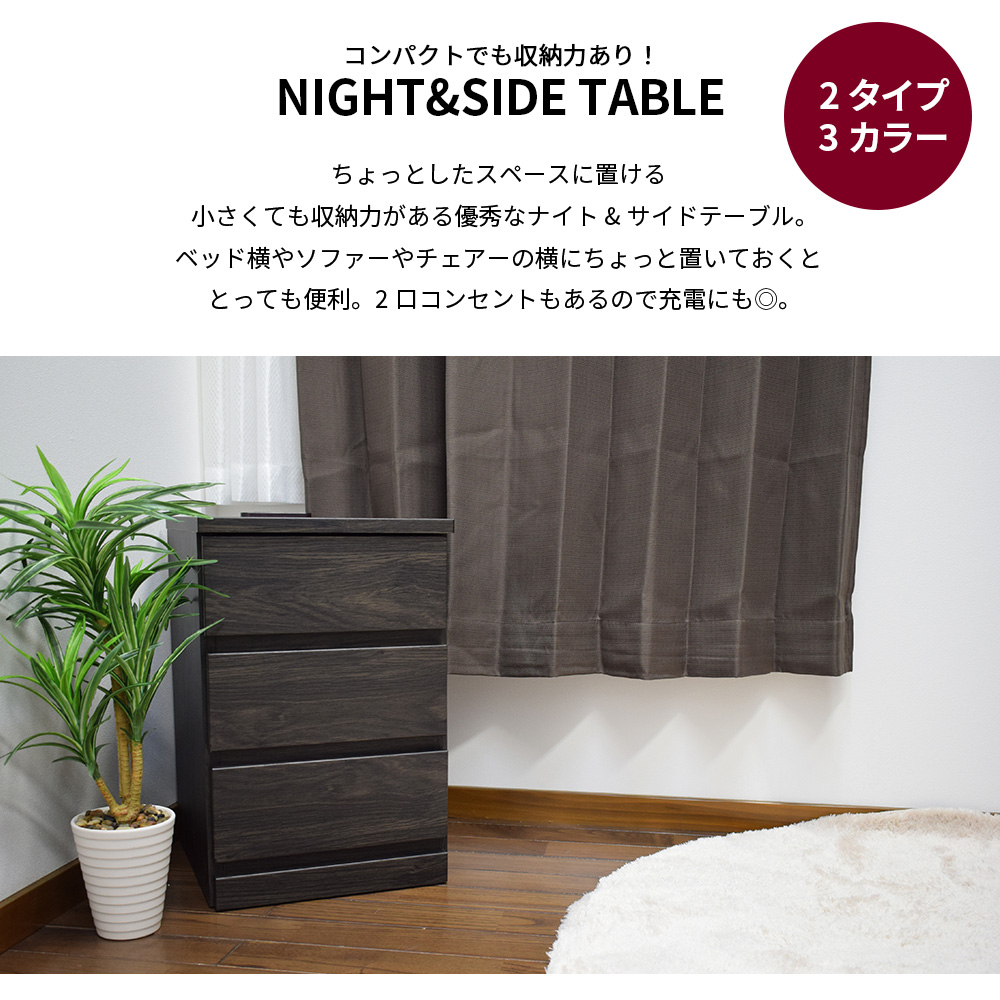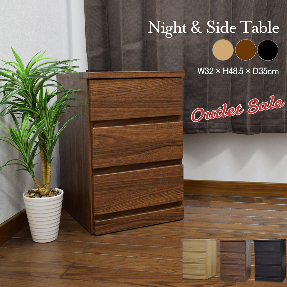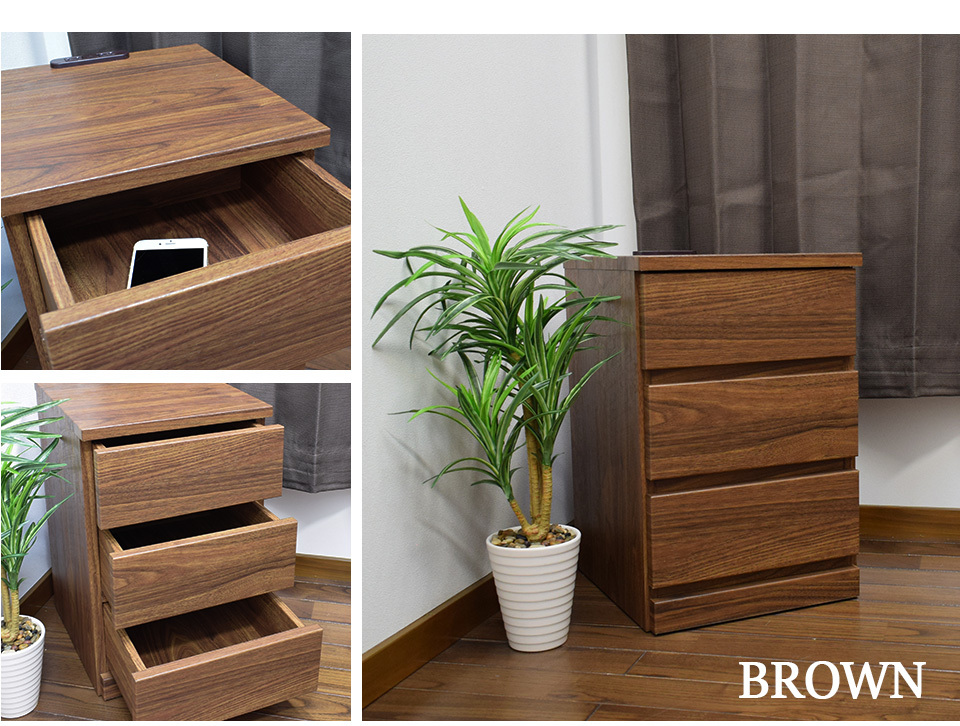 ナイトテーブル(3段引出しタイプ)