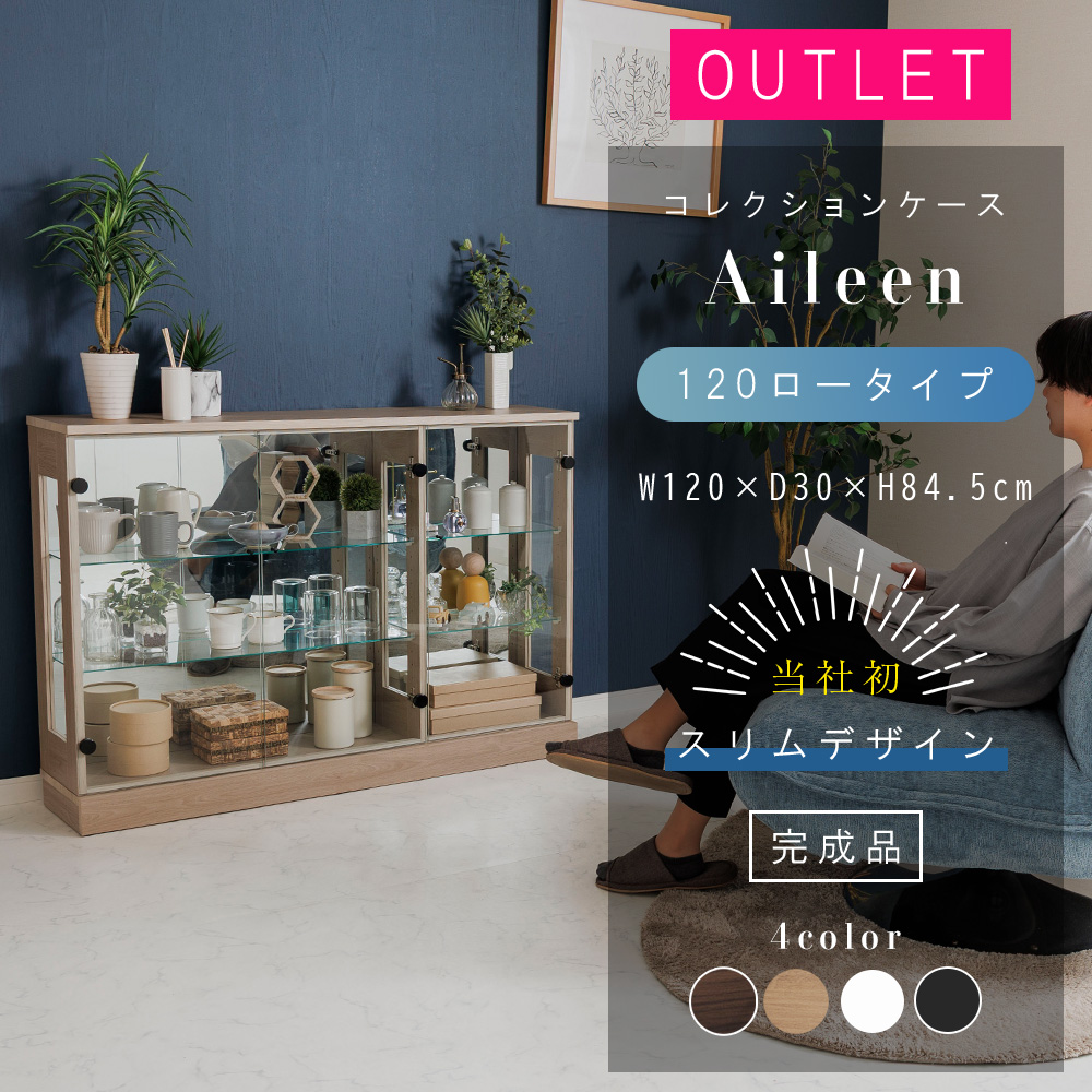 アウトレット コレクションケース LED ダウンライト コレクションラック ガラスケース 幅120 コレクションボード ディスプレイ ハイタイプ アイリーン 120L 爆買