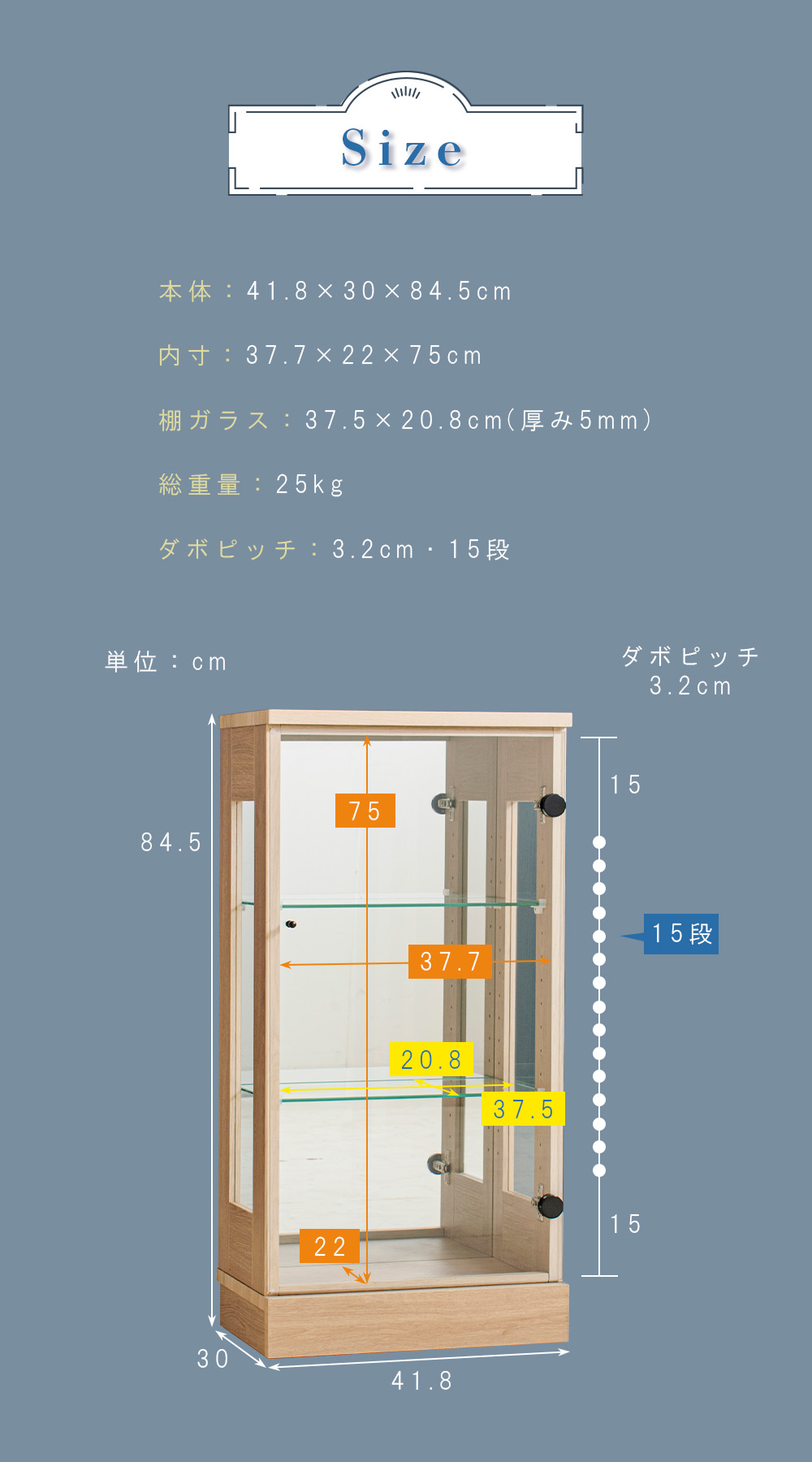 コレクションケース LED ダウンライト コレクションラック ガラスケース 幅42 40 コレクションボード ショーケース ディスプレイ ロータイプ アイリーン 42 爆買