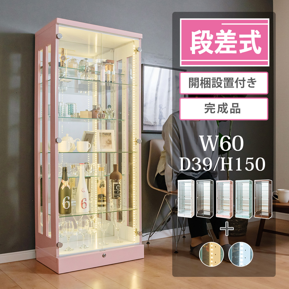 コレクションケース 段差式 LED 縦ライト 幅60 ハイタイプ コレクションラック 大型 フィギュアケース 鍵付き ガラスケース コレクションボード アーク