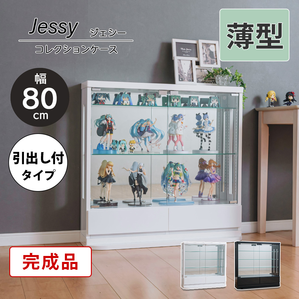 コレクションケース 薄型 引出し付き 幅80cm 完成品 コレクションボード ガラスケース フィギュアケース コレクションラック ジェシー B