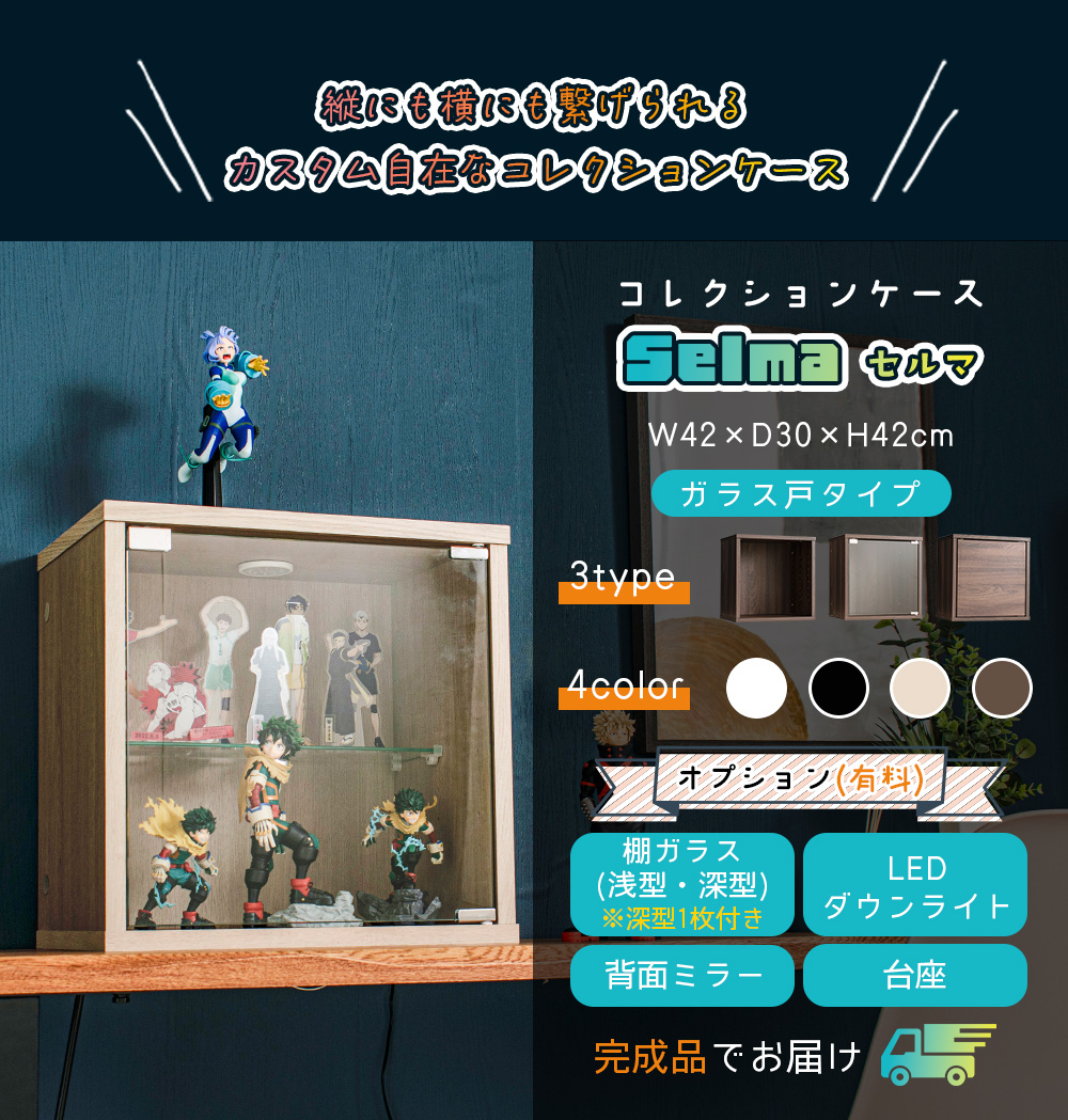 コレクションケース 幅42cm ガラス戸タイプ フィギュアケース オタ活 コレクション ボックス 積み重ね可能 扉付き 透明 ガラス 収納 段差式 セルマ