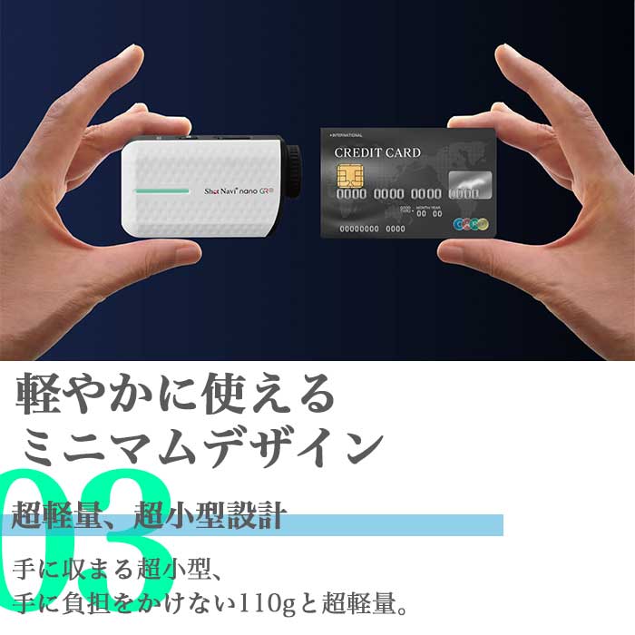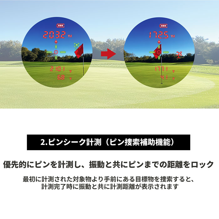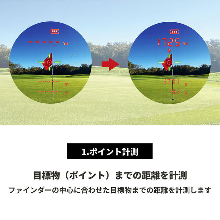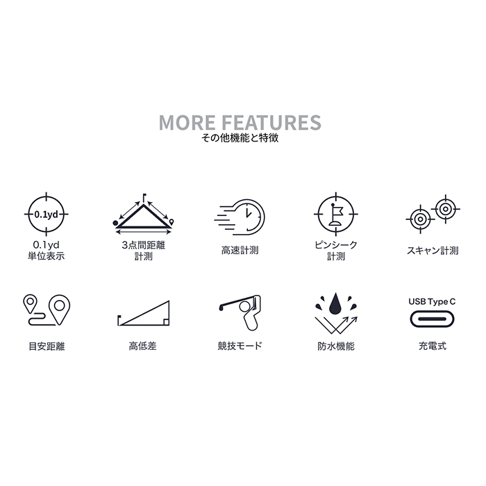 | 軽量・コンパクトボディに宿る、視認性へのこだわりが詰まったレーザー距離計測器です。 手に負担をかけない超軽量、持ち運びに便利な超小型設計と、瞬時に読み取れる明瞭な表示でプレーの流れを妨げることなく、ストレスフリーな計測が叶います。 |