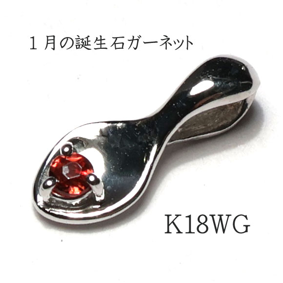 ペンダントトップ 1月誕生石ガーネット付きスプーン形ペンダント K18WG製ホワイトゴールド ベビースプーン形ペンダントのみ