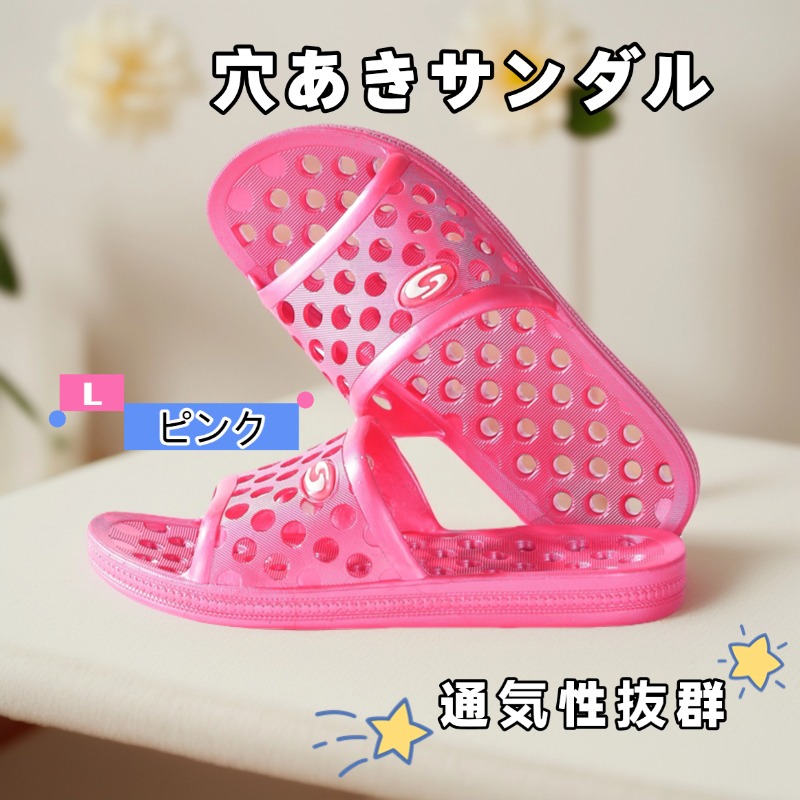 ONESORA ベランダサンダル 浴室サンダル 室内履きサンダル ピンク L 約25cm PVC素材 縮まない 穴あき 水が溜まらない 水抜きサンダル 来客用サンダル