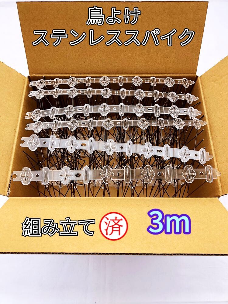 鳥よけ 鳩よけ カラスよけ ステンレス スパイク 【組み立て済み 総長:3m 】 ベランダ 鳩よけ ステンレス とげとげシート 鳥よけピン 鳥よけスパイク 鳥よけ針 野良猫よけ 侵入対策 野鳥鳴き声・フン害防止