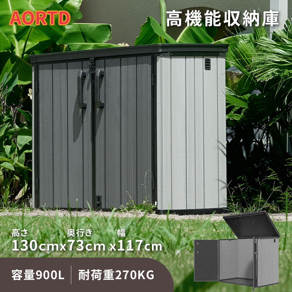 AORTD 物置 収納庫 収納ボックス 屋外 防水 耐侯 大型 倉庫 大型物置 戸外収納庫 大容量 ガーデン収納 コンテナ 庭 ベランダ カラス/猫除け 頑丈 2年保証
