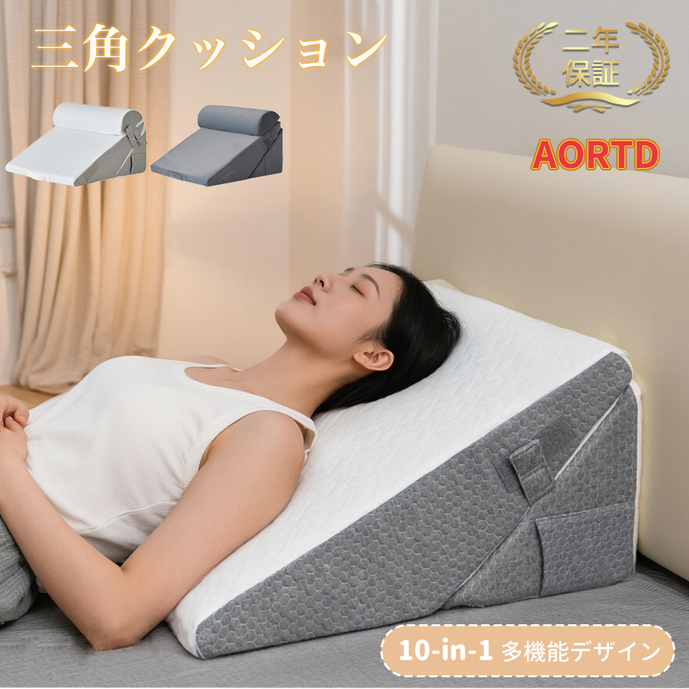 AORTD 三角クッション 高反発 三角枕 腰枕 背もたれクッション 枕 クッション 高反発 高さ調節可能 10-in-1 傾斜枕 ヘッドレスト レッグレスト 読書 リラックス