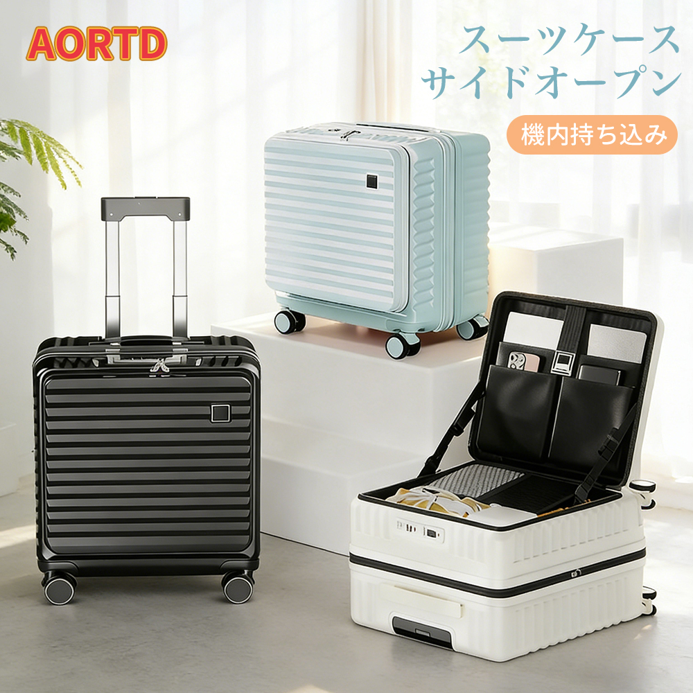AORTD スーツケース キャリーケース キャリーバッグ 機内持ち込み 軽量 フロントオープン Sサイズ カップホルダー付 TASロック 可愛い 旅行 ビジネス 出張 静音