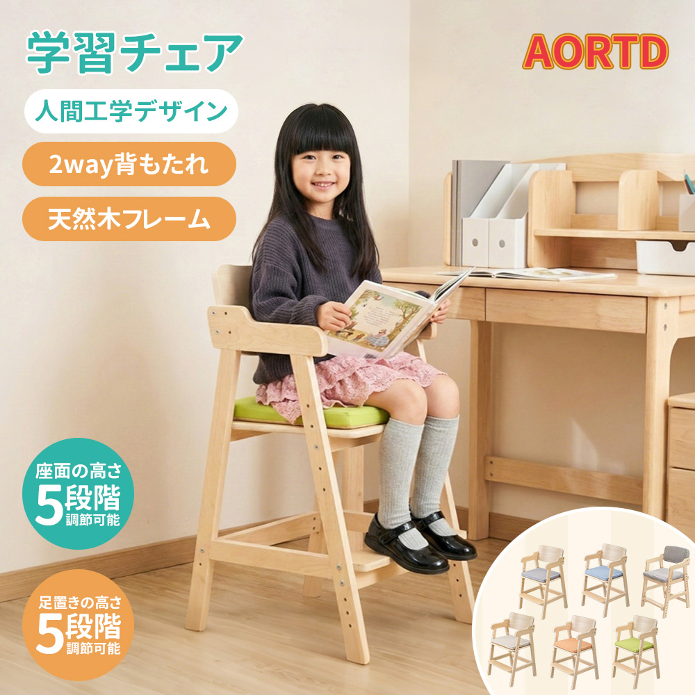 AORTD 学習チェア 子供 学習椅子 子供 勉強椅子 木製 ハイチェア キッズチェア 学習 おしゃれ キッズ 子供用 オフィスチェア 高さ調節 チェア コンパクト 足置き