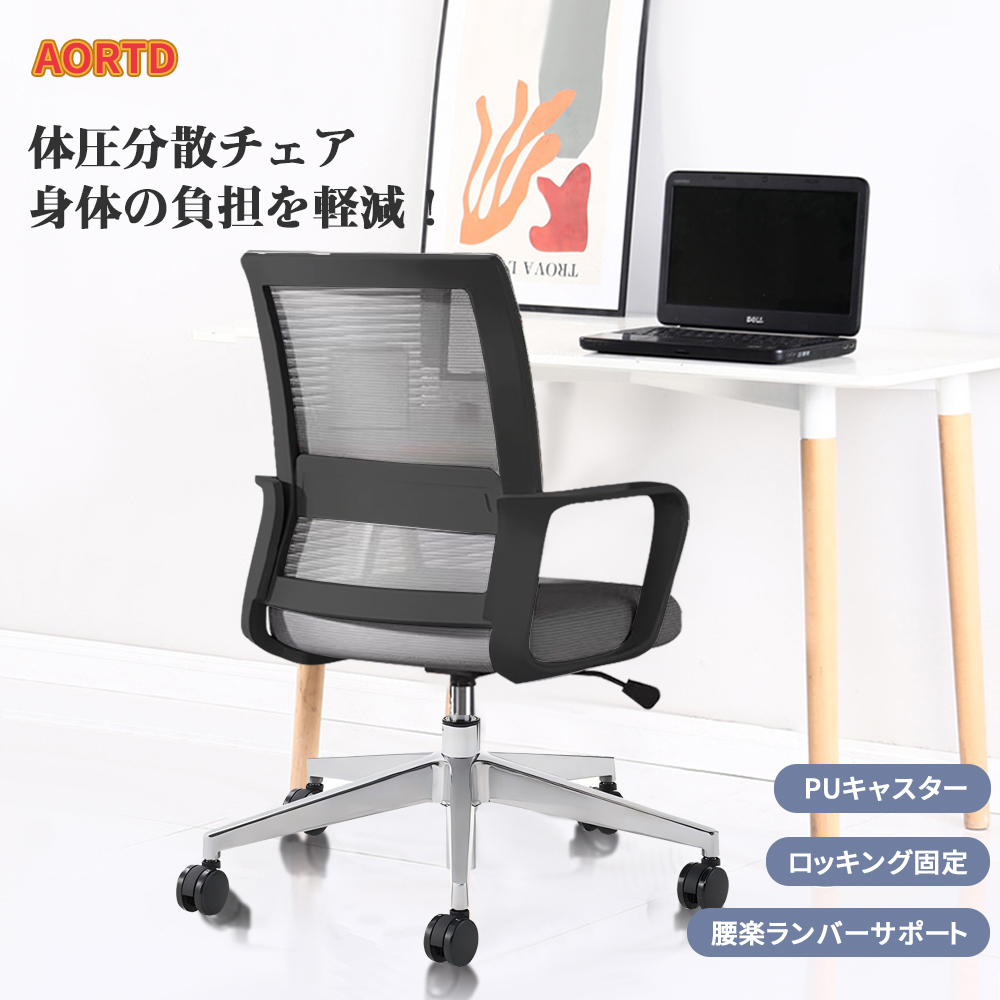 AORTD オフィスチェア メッシュ カバー クッション おしゃれ リクライニング 肘付き コンパクト 腰痛 ハイバック デスクチェア 回転 キャスター パソコンチェア