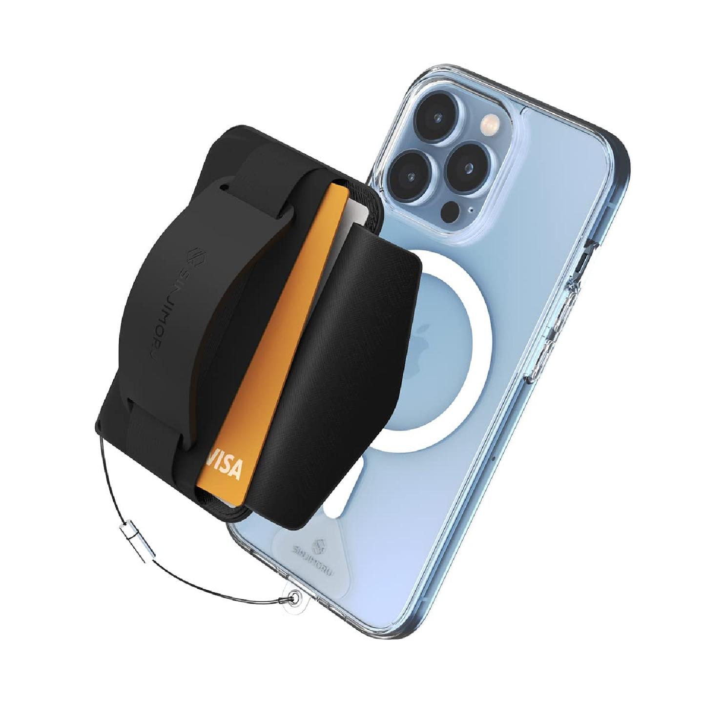 スマホ カードケース MagSafe対応 スタンド機能付き 落下防止タグパッチ着脱簡単 Sinjimoru M-BGrip ブラック