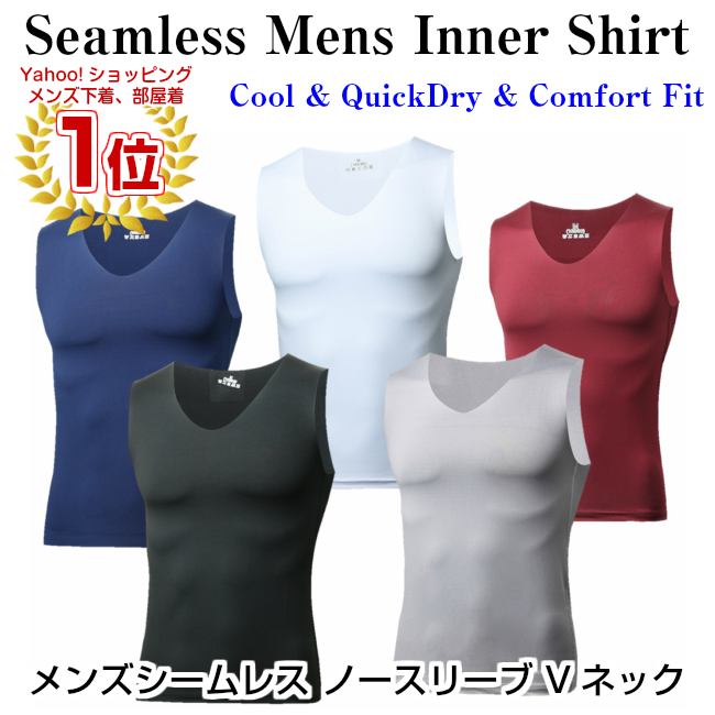 メンズ インナー シームレス ノースリーブ Vネック シャツ