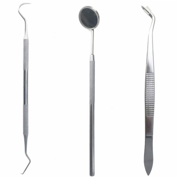 スケーラー、歯鏡、ピンセットの3点セットです。