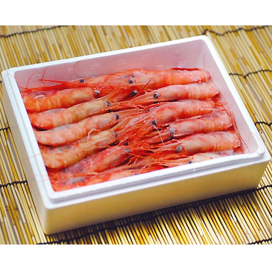 船内冷凍甘海老:水深200m〜500mで獲れる甘海老は、甘みや粘りが強く良質とされています。酸化防止剤を使用せず、獲れた甘海老を無選別で急速凍結しました。