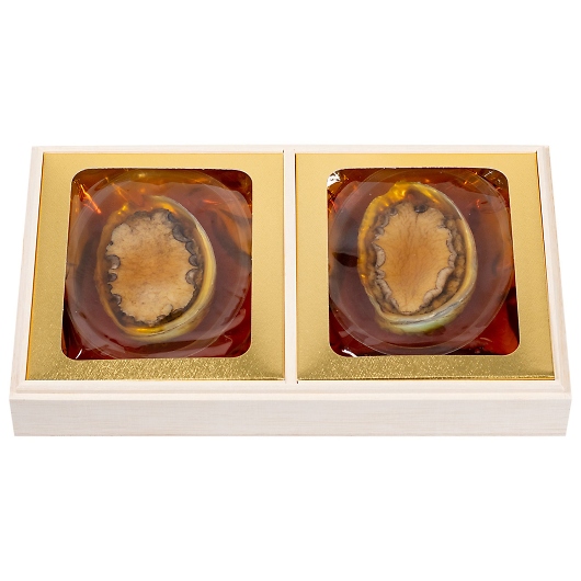 えぞあわびをじっくりとやわらかく煮上げました。調味液の塩分を既存品から25%カットしました。木箱入りで贈り物にもおすすめです。