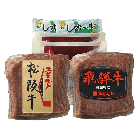 ●商品内容/飛騨牛モモローストビーフ100g、松阪牛モモローストビーフ100g、ローストビーフソース20g×2、レホール3g×2