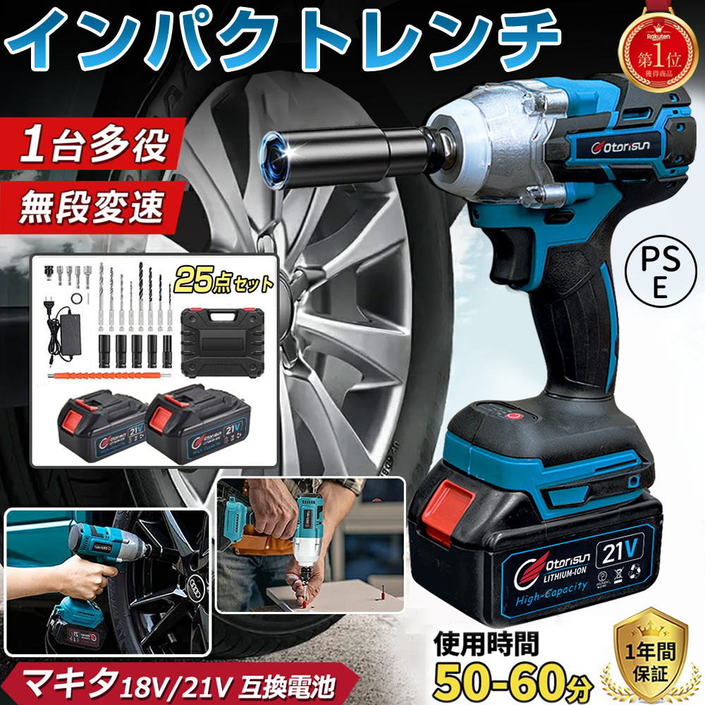 マキタ 互換 インパクトレンチ 充電式 電動ドリル 2025新登場 電動ドライバー 21V マキタ 18Vバッテリー互換 電動レンチ 強力 正逆転両用 機械修理 LEDライト付