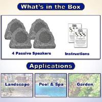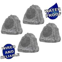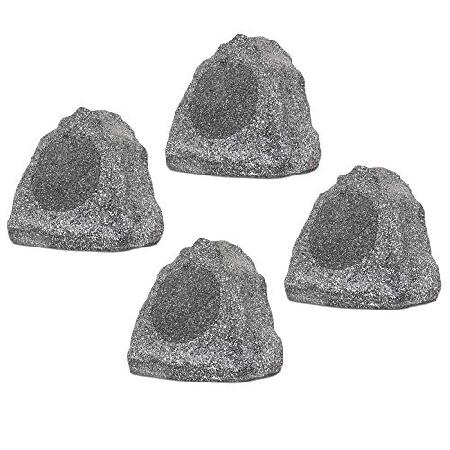 Theater Solutions 4R6G Outdoor Granite 6.5" Rock 4 Speaker Set for Deck Pool Spa Yard Garden, Gray