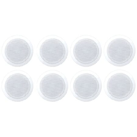 説明: This 8-Pack of Pyle Home Ceiling Speakers delivers stereo sound to any room in your home or office without cluttering floor space. This way, you can access great sound and music for entertaining guests, movie nights, karaoke contests, and more without the hassle of setting up boxy speaker systems. These pairs of 6.5-inch, 2-way stereo speakers can be used for in-wall and in-ceiling applications as they mount flush for a clean look. Perfect for custom installations, the PDIC series speakers feature impressive power handling capability, a 1-inch high-temperature voice coil, and high-efficiency response rates, all to produce a full and rich sound. Additionally, the 200-watt rated peak power and directable 0.5-inch polymer dome tweeter provide sound you'll love when jamming out to your favorite tunes. With convenient speaker terminals, these in-home speakers allow for quick and hassle-free speaker wire connection. The speaker set includes a cutout template for easy installation. Achieve wide-ranged sound performance and add audio to any room with this 8-Pack of PDIC 6.5-Inch Home Speakers.