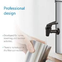 - Efficient filtration: Developed for families that use substandard drinking water, for travel and outdoor activities, the Black Water Filter uses natural coconut shell activated carbon and BPA-free housing (Please confirm whether you are allergic to it), which effectively reduces harmful substances such as sand, rust, odor, sediment, and large particles and improves the taste of water. You can get up to 99% of chlorine reduction. It provides you with clean, safe water.