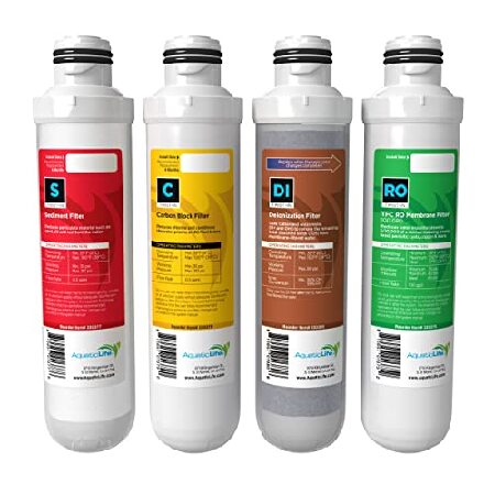 The AquaticLife RO/RODI replacement cartridges pack for 3 and 4 stage reverse osmosis/deionization water filter systems include (1) Sediment Filter Cartridge, (1) Carbon Block Filter Cartridge, (1) 100 GPD TFC Membrane Filter and (1) Deionization Filter Cartridge. Designed to simply "Twist-In" to the pivoting head on the Aquatic Life 75 and 100 GPD Models of the Twist-In RO and RO/DI units.