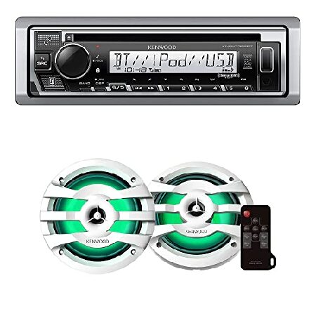 KENWOOD KMR-D382BT Car & Marine Stereo - Single Din, Bluetooth Audio, CD USB MP3, Aux in, AM FM Radio, Weatherproof | Plus Kenwood KFC-1673MRWL 6-1/2