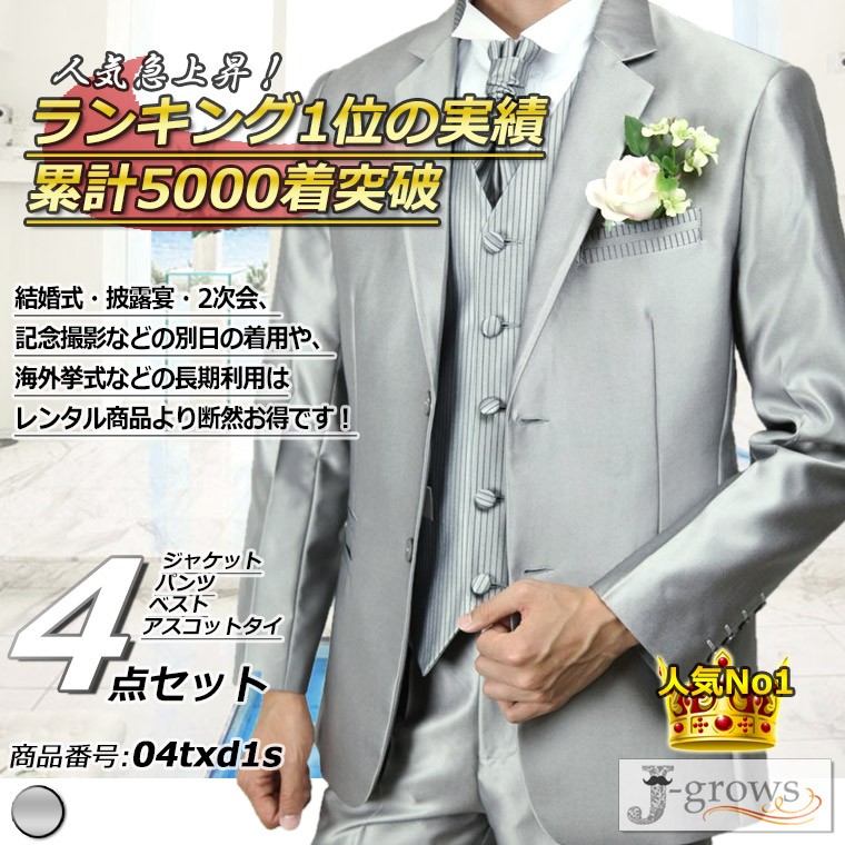タキシード 4点セット シルバー 送料無料 結婚式 海外 披露宴 二次会 パーティ 演奏会 発表会 フォーマル 04txd1s
