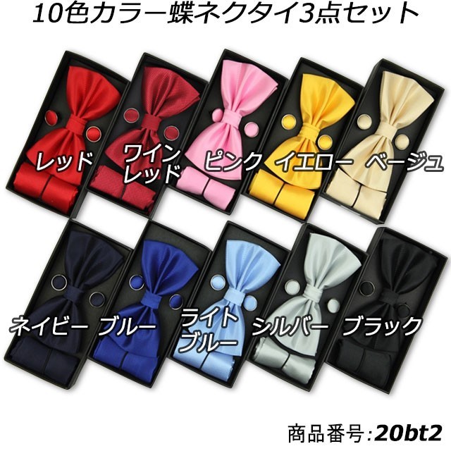蝶ネクタイ カフスボタン チーフ の 3点セット ケース付き 蝶タイ ボウタイ フォーマル 選べる10色 20bt2