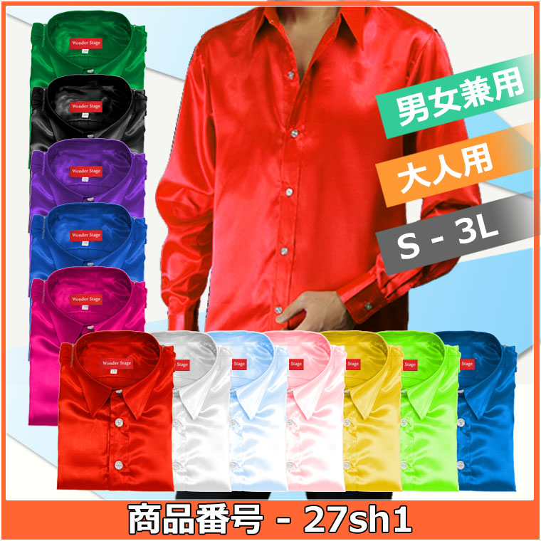 サテンシャツ 12色 S〜3Lサイズ サテン生地 ステージ衣装 ダンス衣装 舞台衣装 合唱 吹奏 カラオケ衣装 ライブ 男女兼用 27sh1