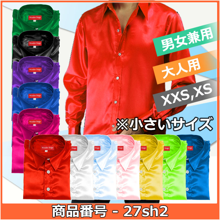 サテンシャツ 12色 XXS,XSサイズのみ ステージ衣装 ダンス衣装 舞台衣装 合唱 吹奏 カラオケ衣装 ライブ 男女兼用 27sh2