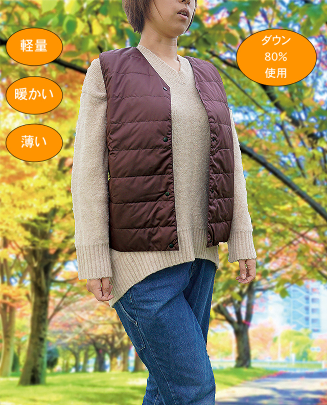 軽さと暖かさにこだわり、羽毛ふとん作りのノウハウを取り入れたこだわりダウンベスト。