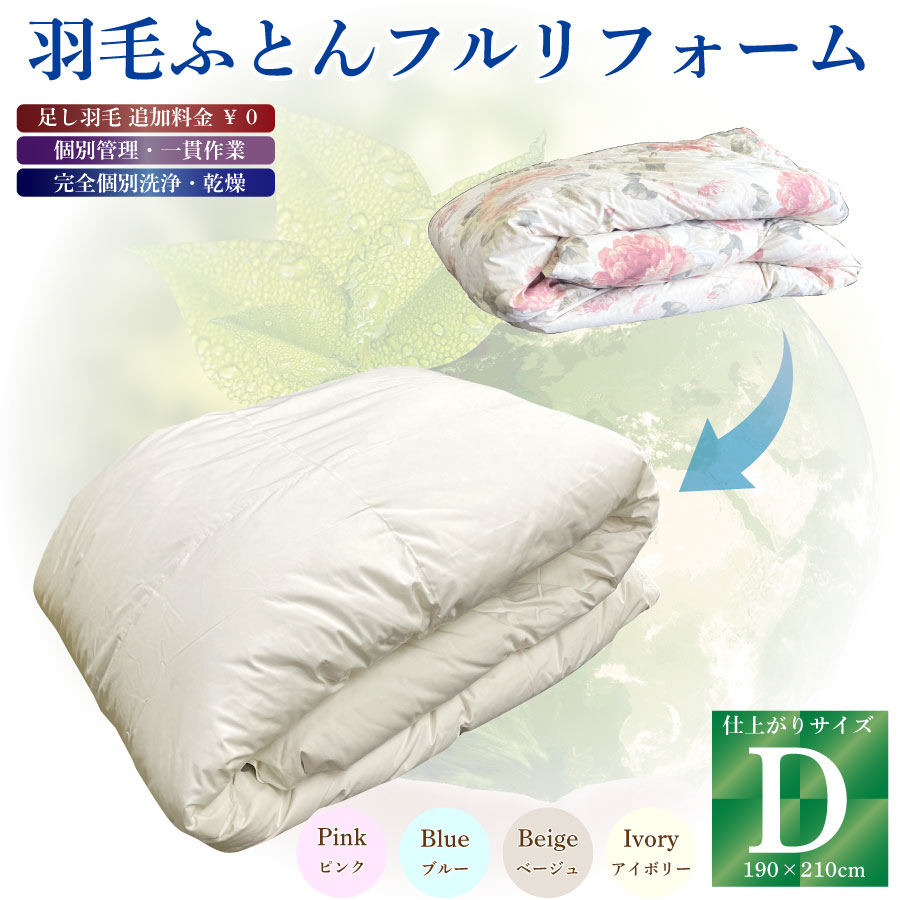 リフォーム対象製品:ダウン50%以上、詰物量1.3kg以上の羽毛ふとん
