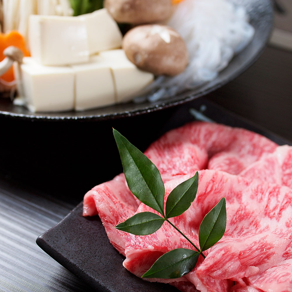 琵琶湖の東の山裾で、血統や飼料、飼育年数にこだわり愛情たっぷりに育てた近江牛です。すき焼しゃぶしゃぶ用です。