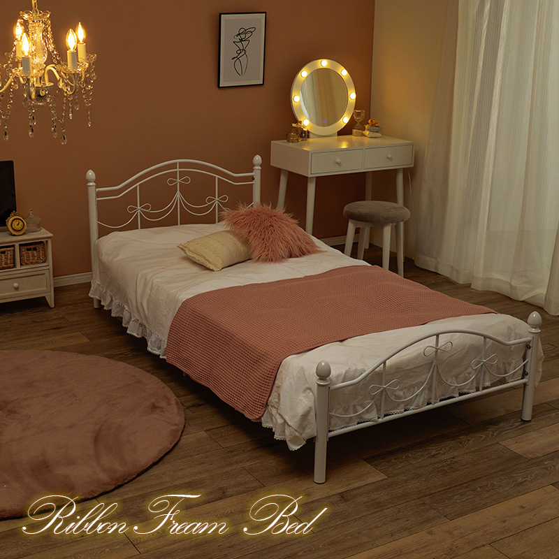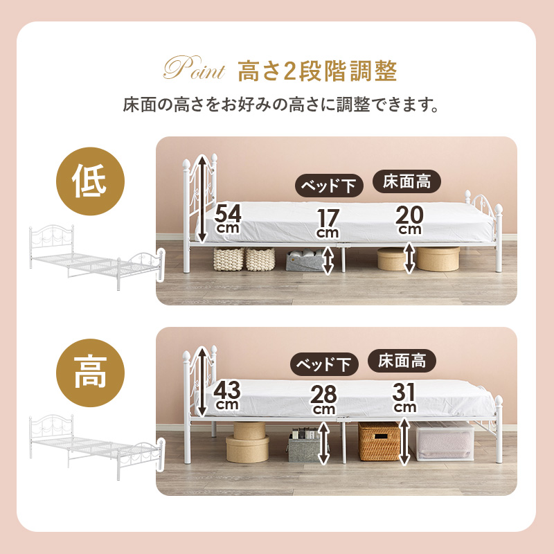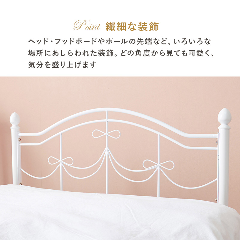 ベッド アイアンベッド マットレス付き マットレス ベッドフレーム メッシュ メッシュ床 かわいい カワイイ スチール スチールベッド 白家具 姫系 高さ調整 高さ調節