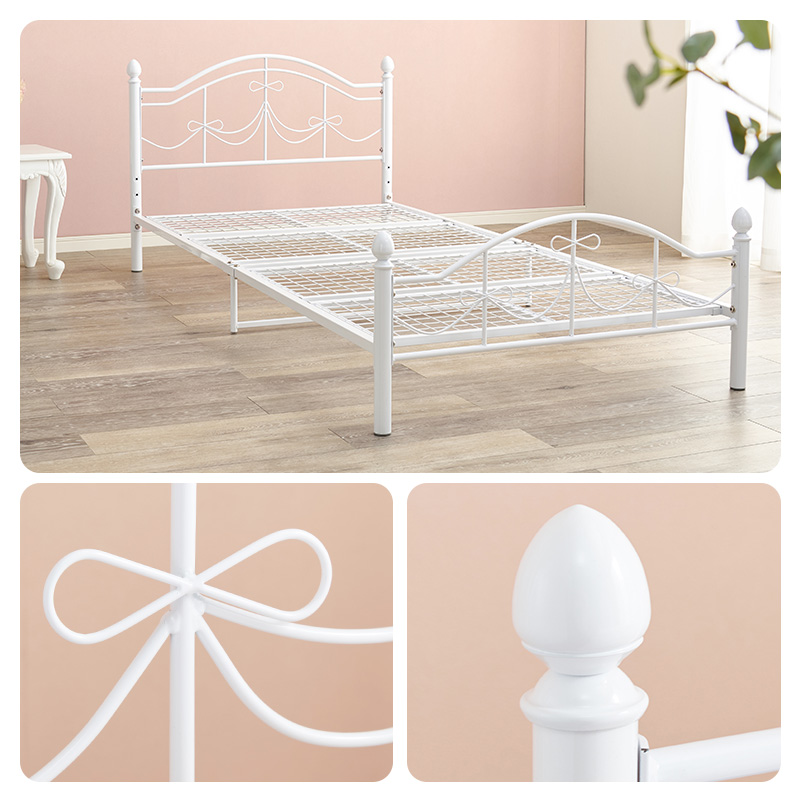 ベッド シングル ボンネルコイルマットレス付き 高さ2段階 マットレス 2点セット 耐荷重90kg シングルベッド メッシュ床 アイアンフレーム ホワイト 姫系