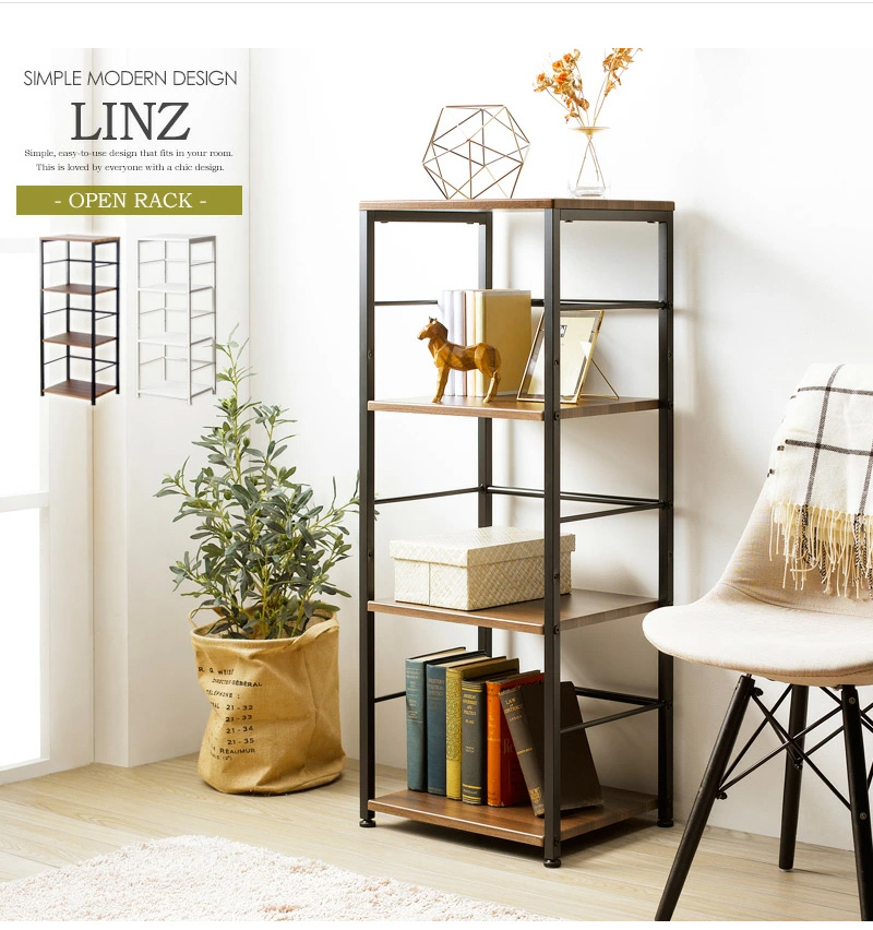 天板を含めた4段の棚に、本や小物を収納したり置物や写真立てを飾ったりと、