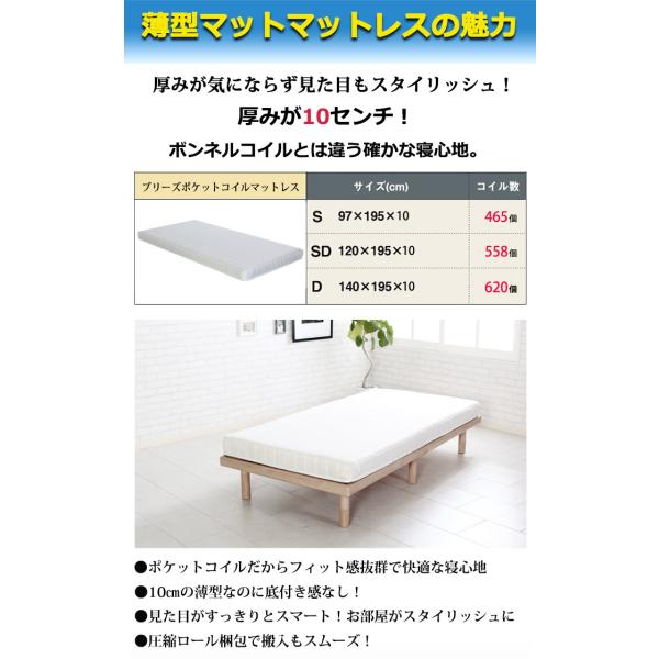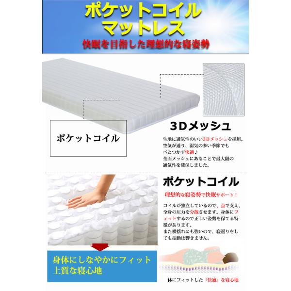 薄型 ポケットコイル マットレス 3Dメッシュ 通気性 体圧分散 快眠 10cm薄型 片面仕様 寝具 弾力性 快適 リラックス ベッドマット マットレスのみ ポケットコイル ベッド 単品