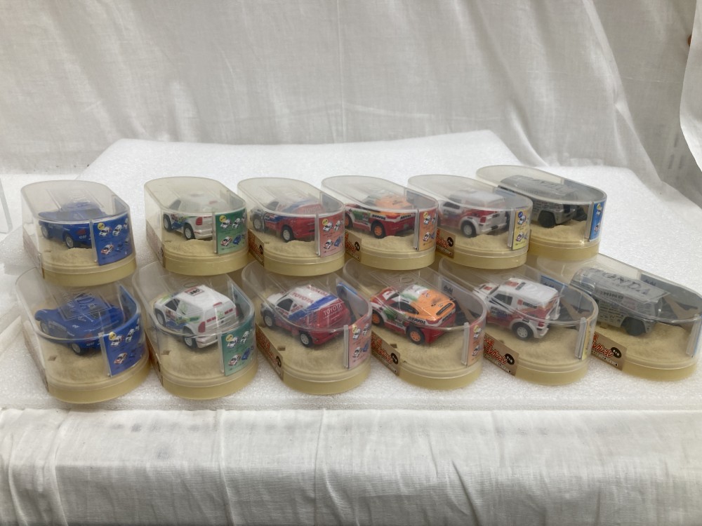 | 商品説明 | アサヒ飲料2009年キャンペーン「ダカールラリー公認 ワンダプルバックカーコレクション」より、6種類12個セットになります。 こちらの商品は缶コーヒーのオマケとして付属していたプルバックカーになります。 レースが行われる砂漠をイメージしたジオラマケースとなっており、レースの臨場感を味わうことができます。 サイズ:全長約50mm |