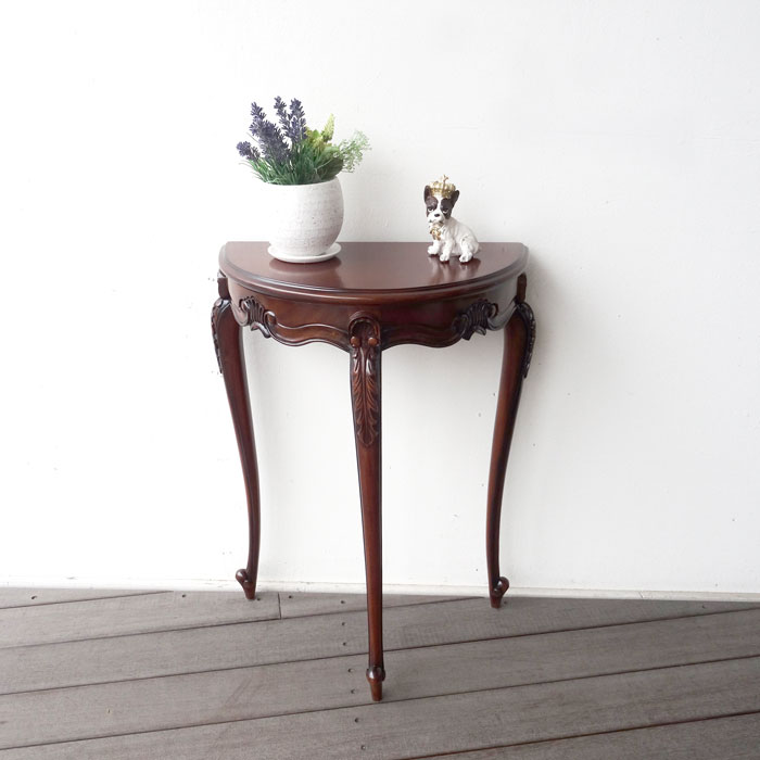 コンソール 花台 電話台 マホガニー コンソールテーブル サイドテーブル 木製 天然木 おしゃれ アンティーク クラシック家具 アジアン家具 フラワースタンド 無垢材 猫足 猫脚 完成品 送料込