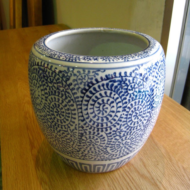 | ◆サイズ :Φ21cm(内径15cm)×H20cm ◆材質 :陶器 ◆備考 :染め付けの火鉢です。鉢カバー、水鉢としてもお使い頂けます。底穴は空いておりません。 ◆送料について :こちらをご覧ください | |