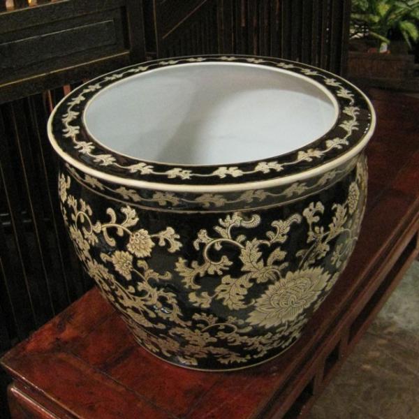 丸大魚洋蓮鉢 黒(大)14号鉢 水鉢 火鉢 睡蓮鉢 メダカ鉢 プランターカバー おしゃれ オリエンタル アジアン 鉢カバー 陶器 すいれん鉢 めだか鉢 鉢